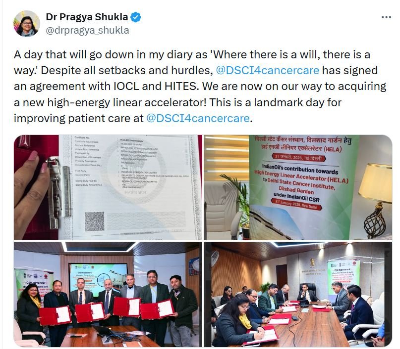 दिल्ली राज्य कैंसर संस्थान और IOCL के बीच बड़ा समझौता, मिलेंगे उच्च स्तरीय लिनियर एक्सीलेरेटर