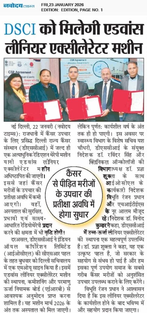 In a major boost to public cancer care in the national capital, doctors at the Delhi State Cancer Institute (DSCI) have partnered with Indian Oil Corporation Limited (IOCL) for the installation of a high-energy Linear Accelerator